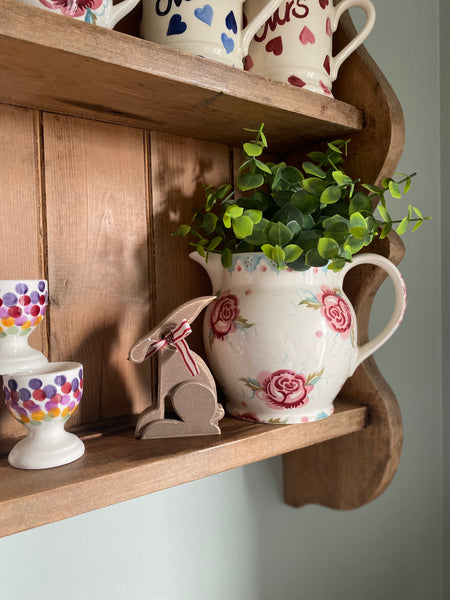 Tilda the hare with her red and white ribbon bow sits perfectly on any shelf.